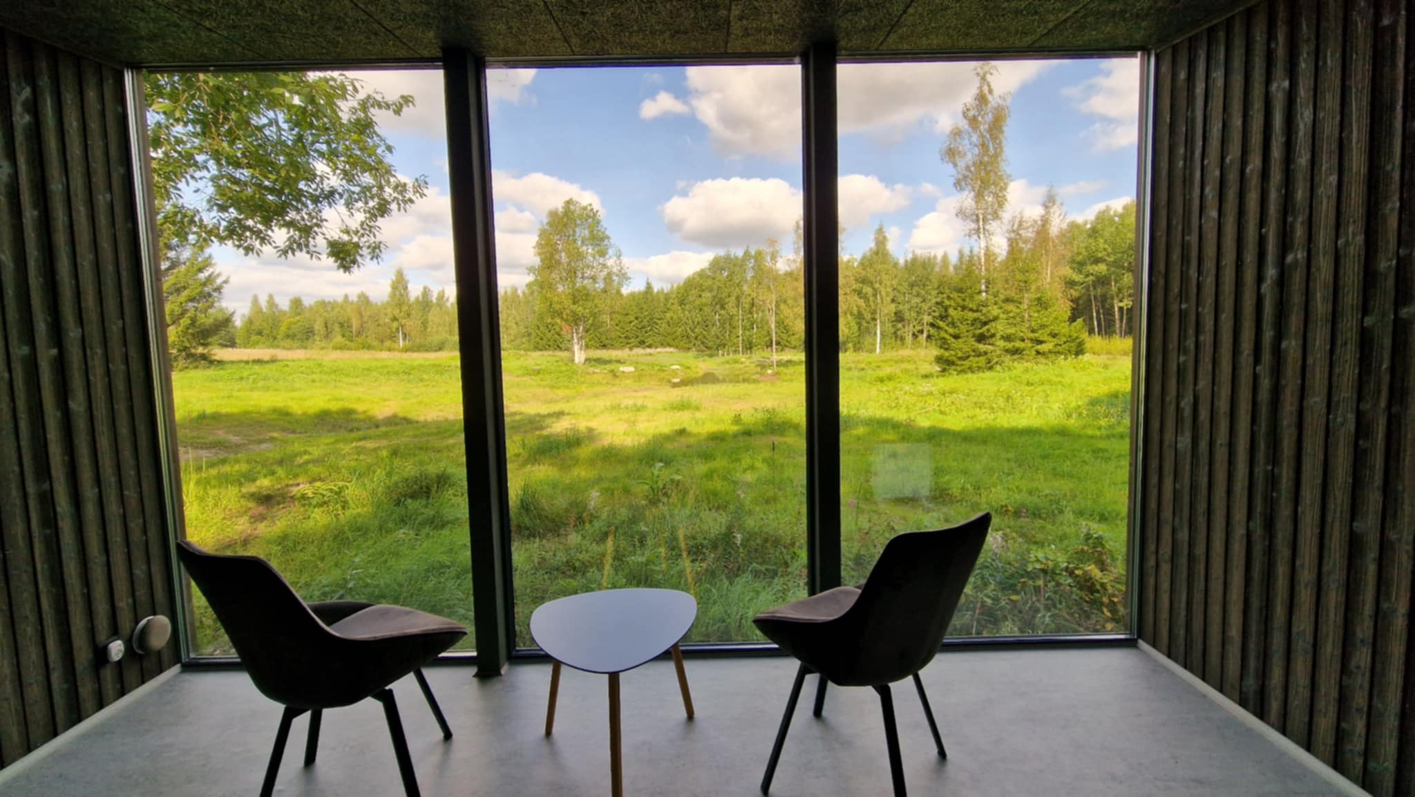 In the luxurious hide, you can observe bears through a floor-to-ceiling mirrored window, even while lounging on a spacious double bed. The elegant interior, crafted from high-quality materials, is inspired by the surrounding nature, creating the feeling of being immersed in the wilderness while still enjoying a secure and luxurious retreat.